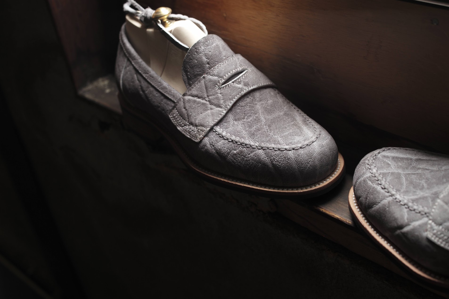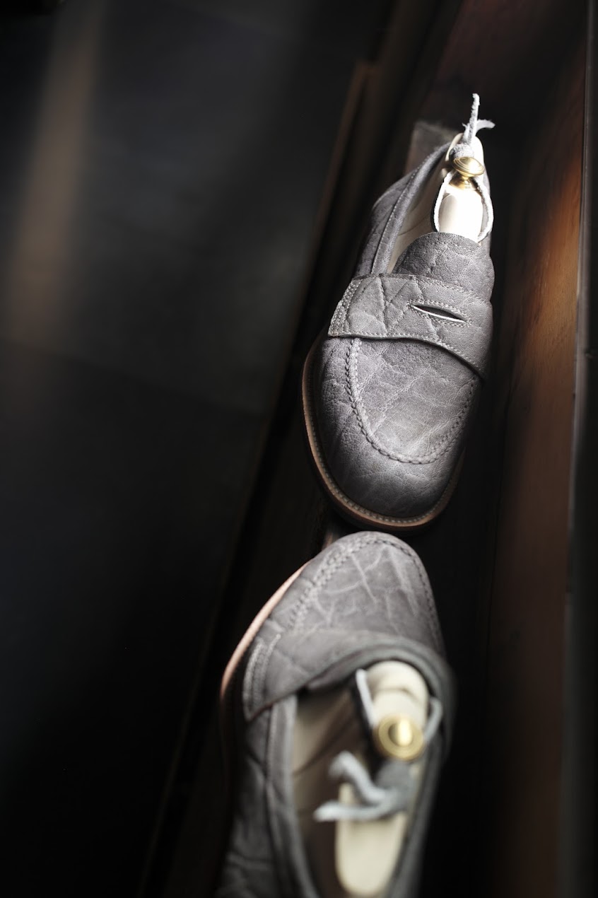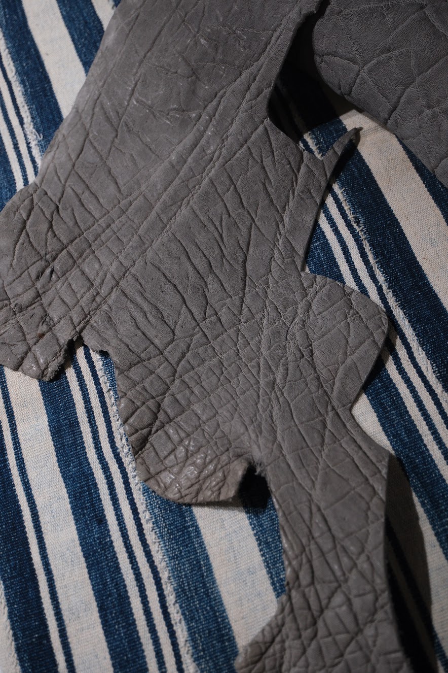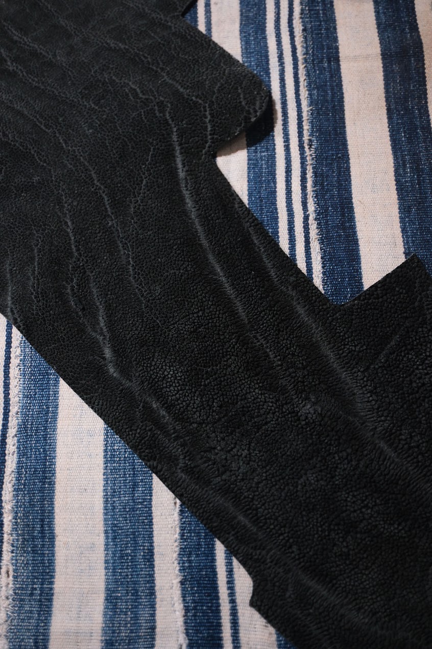 象革は3色扱っていまして。それぞれが短靴もしくはPが製作できるほどの現在のストック。